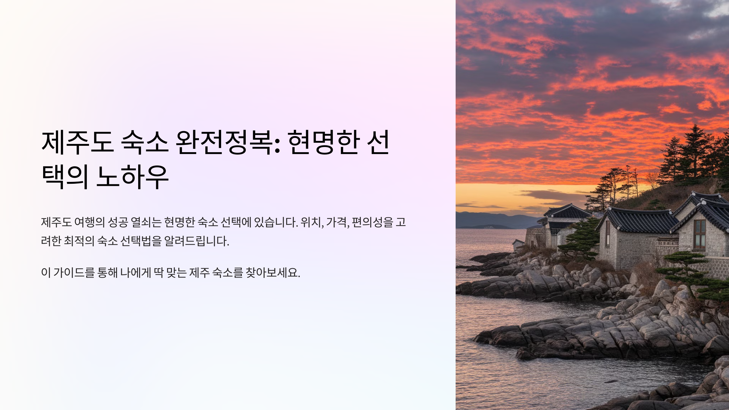제주에서 가성비 좋은 숙소를 찾는 건 쉽지 않아요. 특히 성수기에는 숙소 가격이 급격히 오르기 때문에 미리 전략적으로 예약하는 것이 중요해요. 숙소를 저렴하게 예약하는 핵심 노하우를 알려드릴게요!
