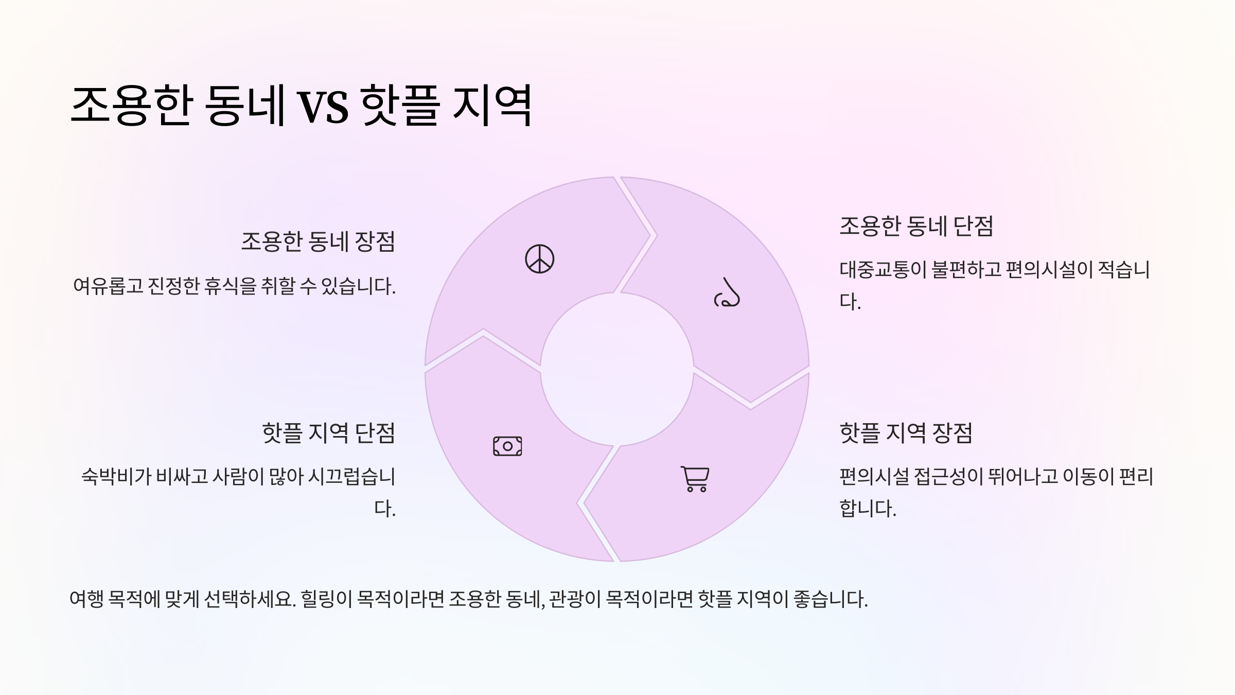 다음 섹션에서는 조용한 동네 vs 핫플 지역, 어디가 좋을까?에 대해 알려드릴게요! 🏝️📍
