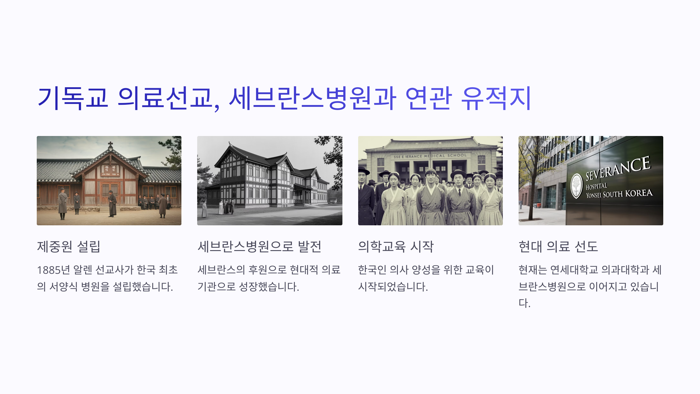 | 세브란스병원 | 한국 의료선교의 중심지 |