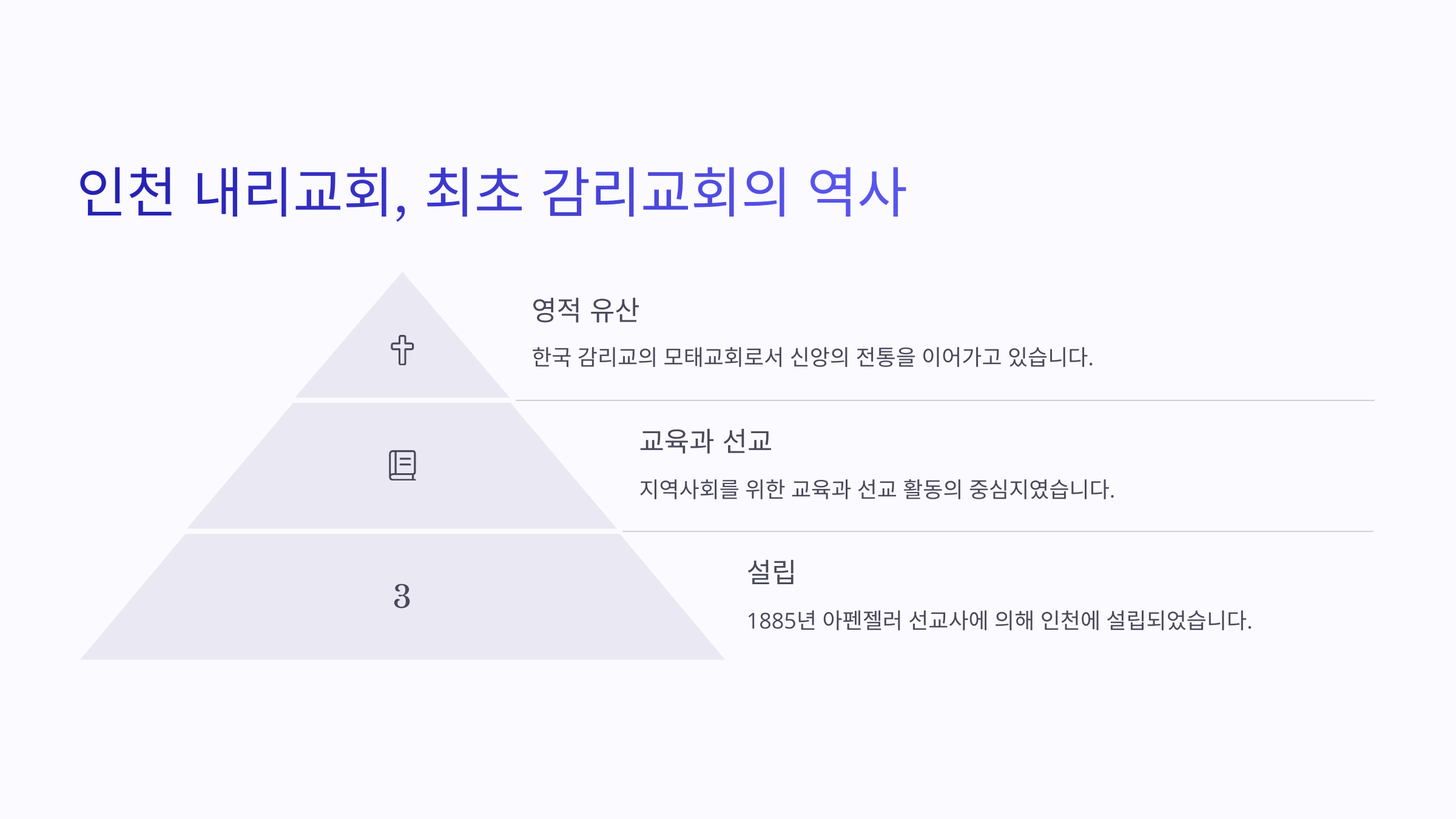 한국 기독교 선교 초기에 감리교 역시 큰 역할을 했어요. 그 중심에는 인천 내리교회가 있어요. 이곳은 한국 최초의 감리교회로, 지금도 감리교의 중요한 신앙 중심지로 남아 있어요.