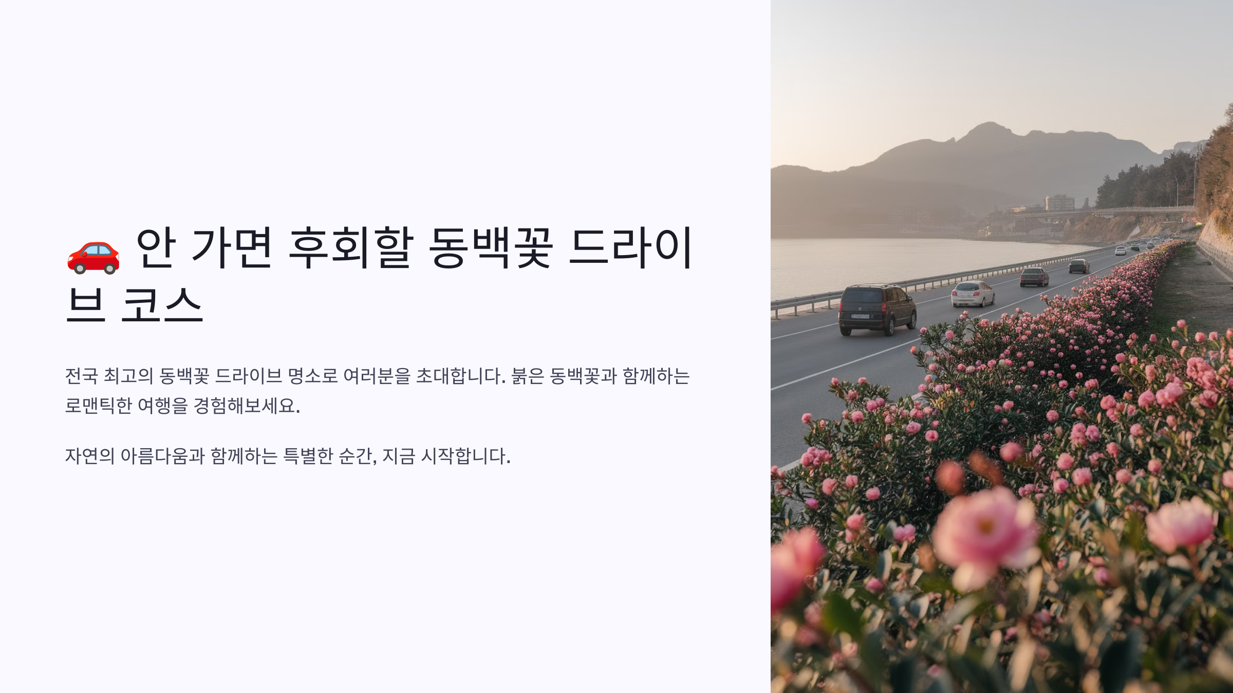 그럼 지금부터 전국 방방곡곡 숨겨진 동백꽃 드라이브 스팟과 드라이브를 더욱 즐겁게 만들어줄 팁들까지 정리해볼게요! 🚗🌺
