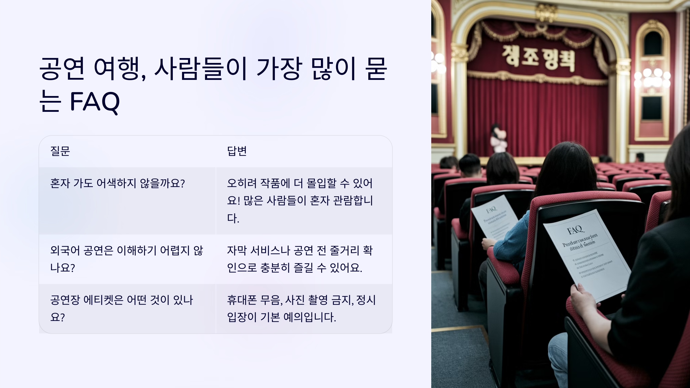 ❓ 공연 여행, 사람들이 가장 많이 묻는 FAQ