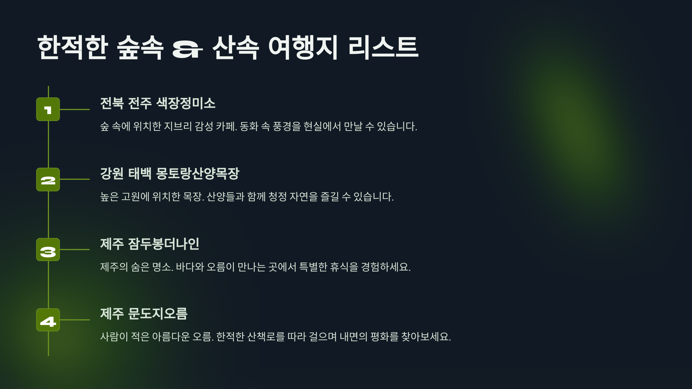 🌲 한적한 숲속 & 산속 여행지 리스트