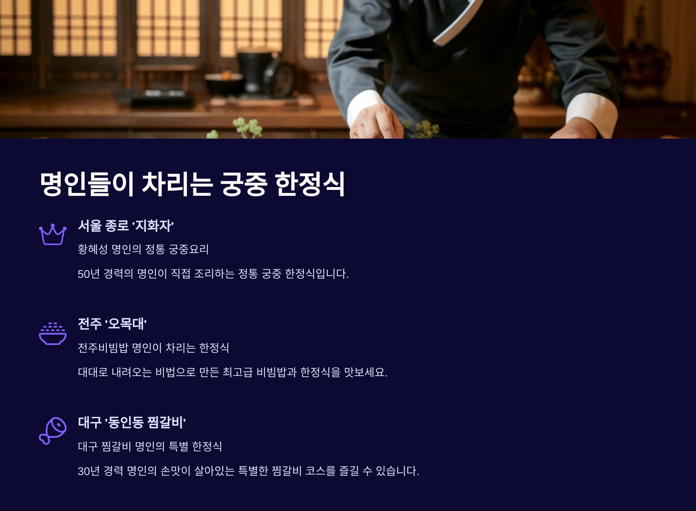 🍽️ 명인 운영 궁중 한정식 레스토랑