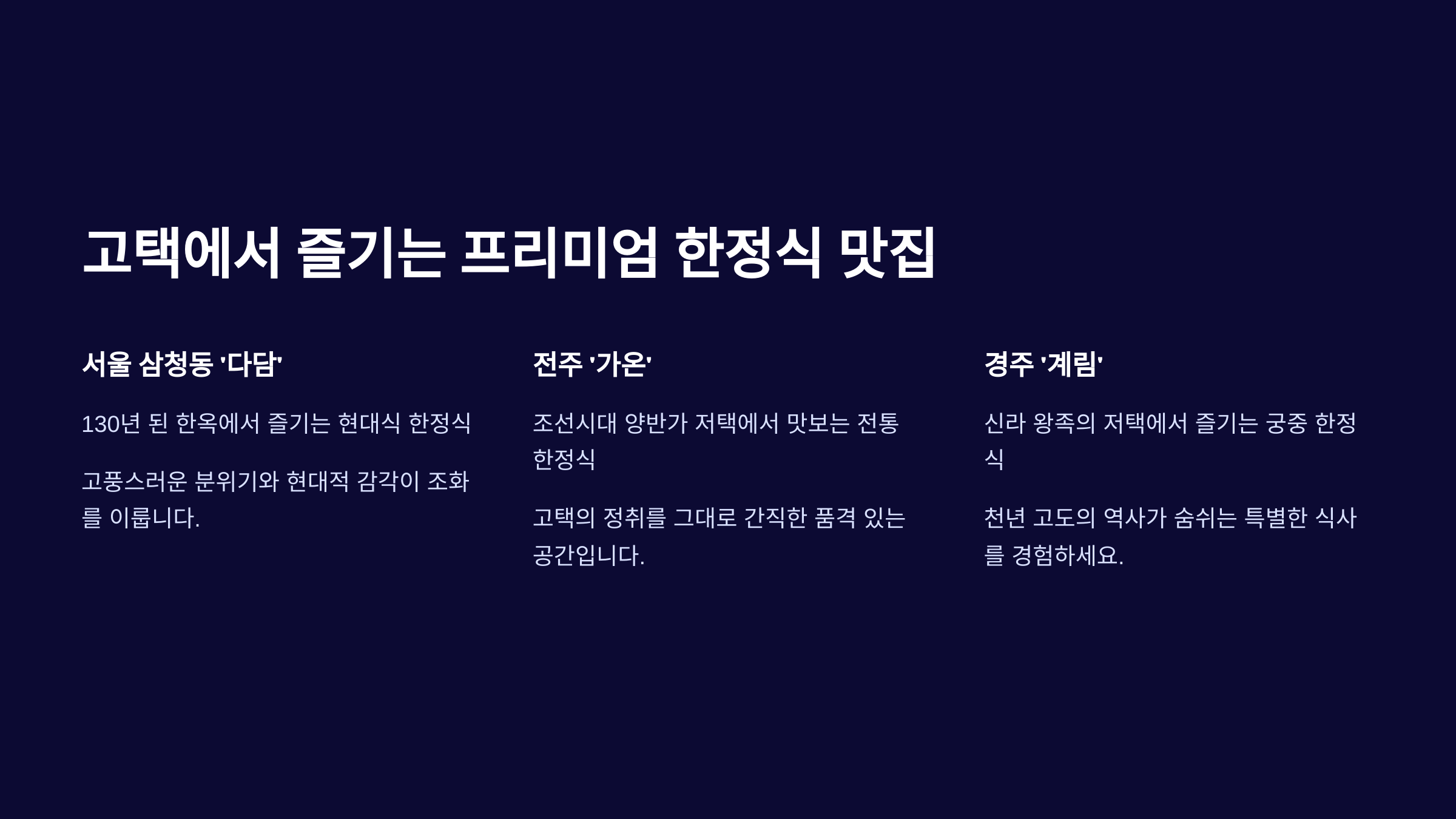 🍽️ 프리미엄 고택 한정식 맛집 비교