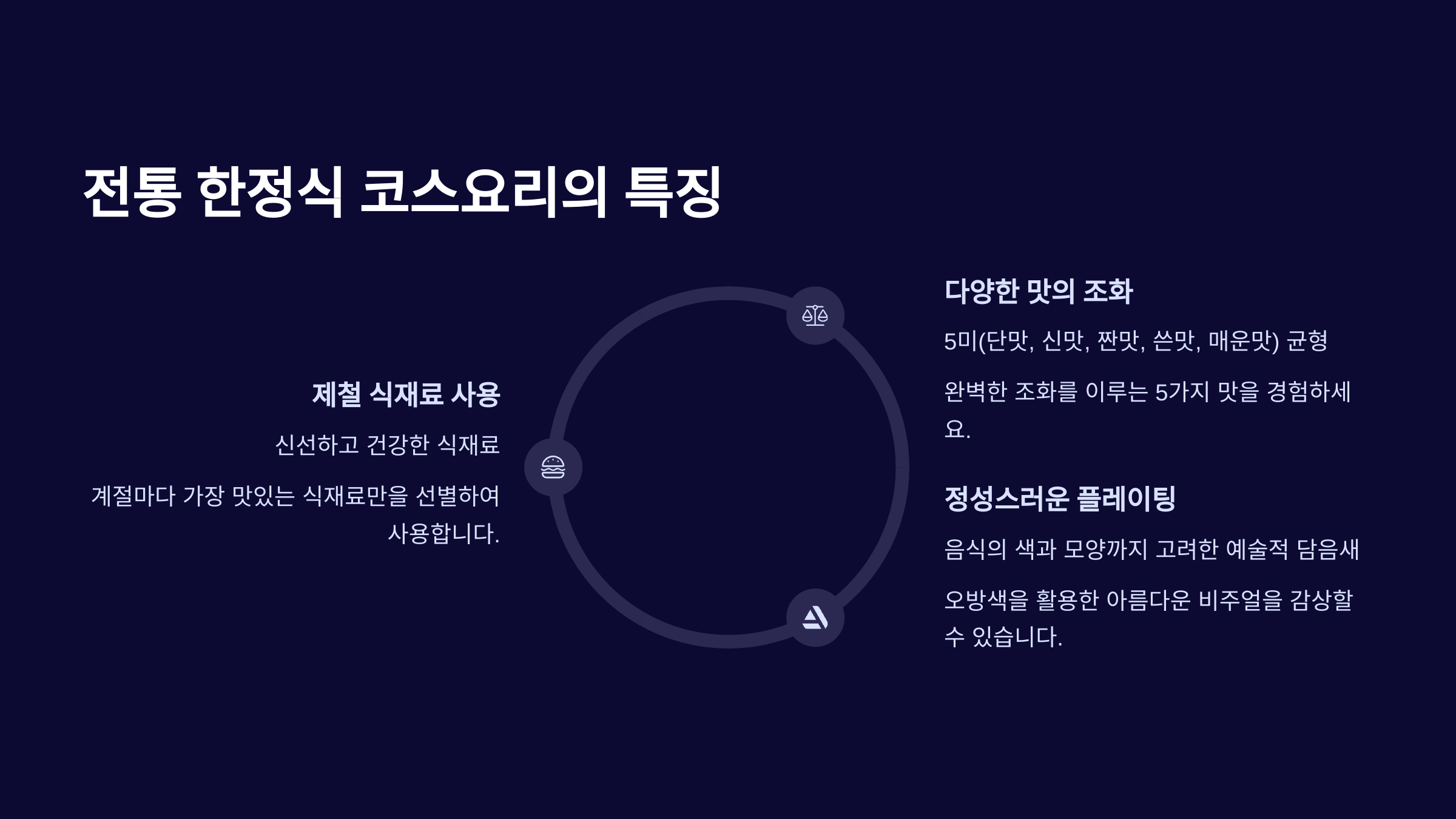 내가 생각했을 때, 한정식은 단순히 맛있는 음식을 먹는 경험이 아니라 한국의 사계절, 손맛, 철학을 함께 느끼는 일종의 ‘문화 여행’ 같아요. 요리마다 담긴 의미와 스토리를 알면 알수록 더 깊은 감동이 있거든요.