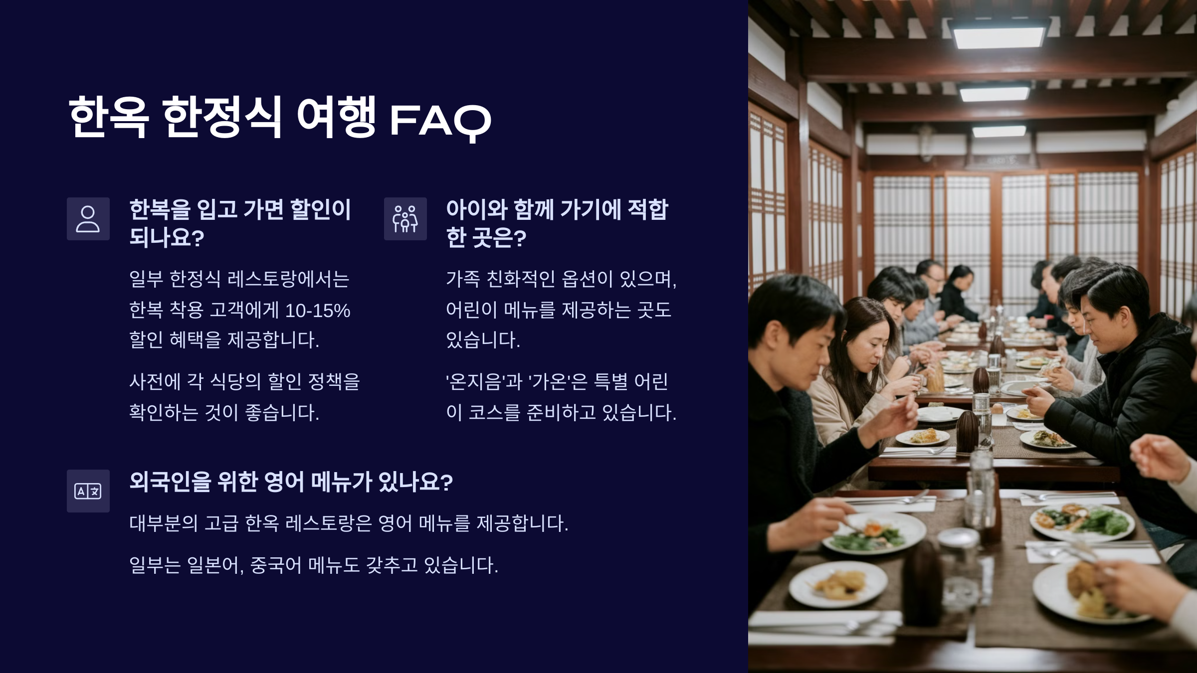 🙋♀️ 한옥 한정식 여행 자주 묻는 질문 (FAQ)