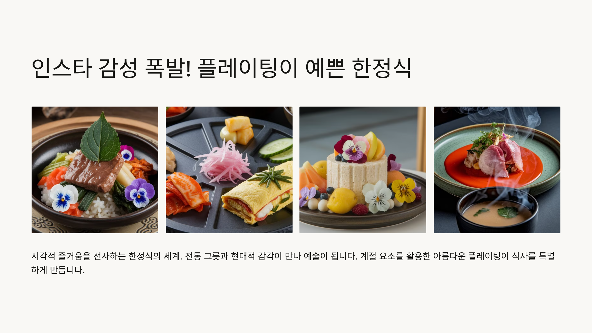 보기 좋은 떡이 먹기도 좋다는 말, 감성 한정식에도 그대로 적용돼요. 맛은 기본, 사진은 덤! 지금 바로 사진 찍고 싶은 한정식집으로 떠나볼까요? 📷✨