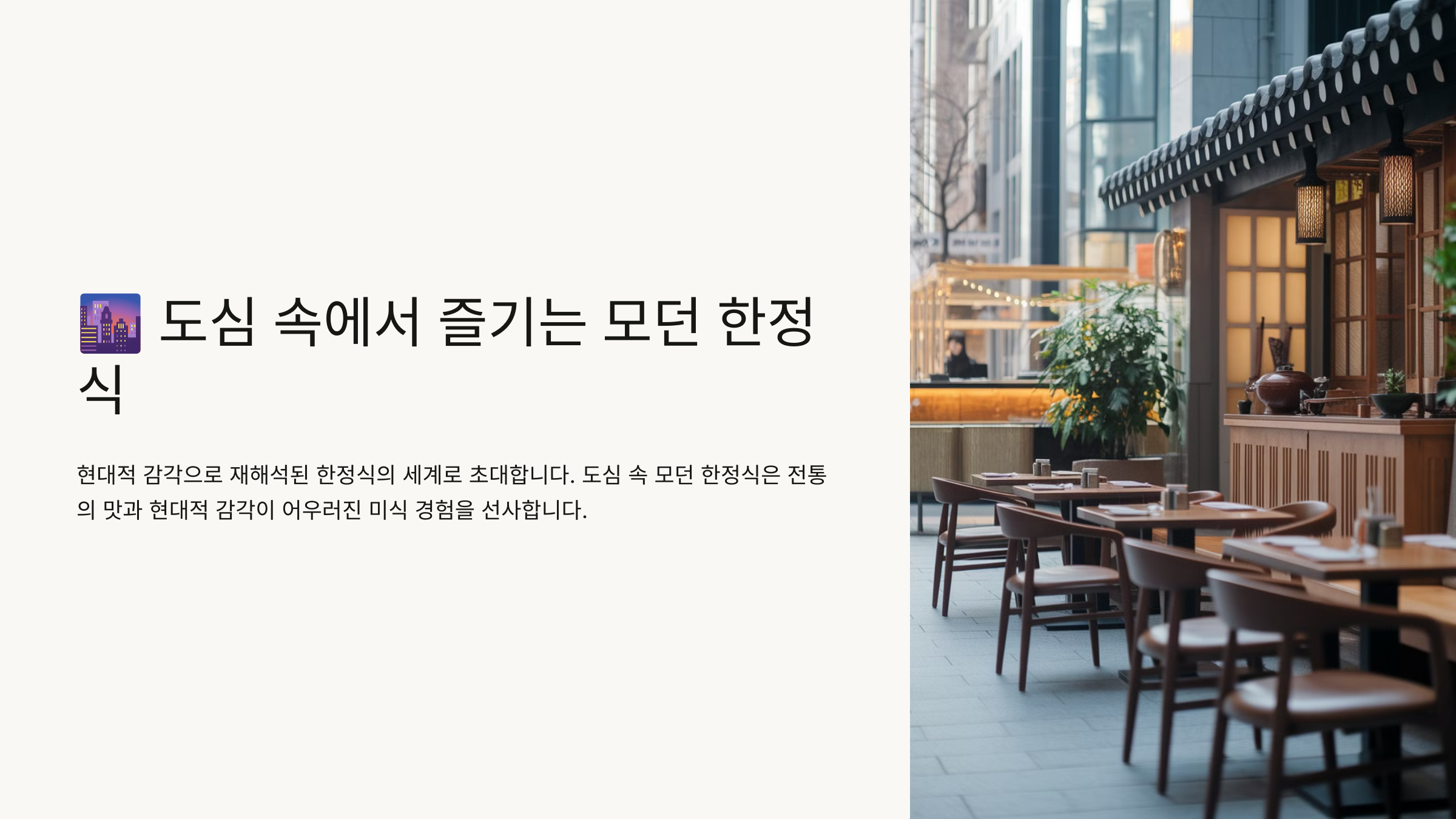 🌆 도심 속에서 즐기는 모던 한정식