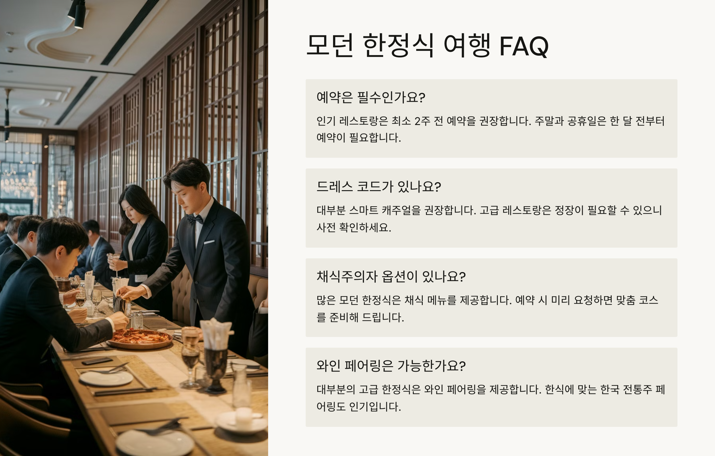 🙋♂️ 모던 한정식 여행 자주 묻는 질문 (FAQ)