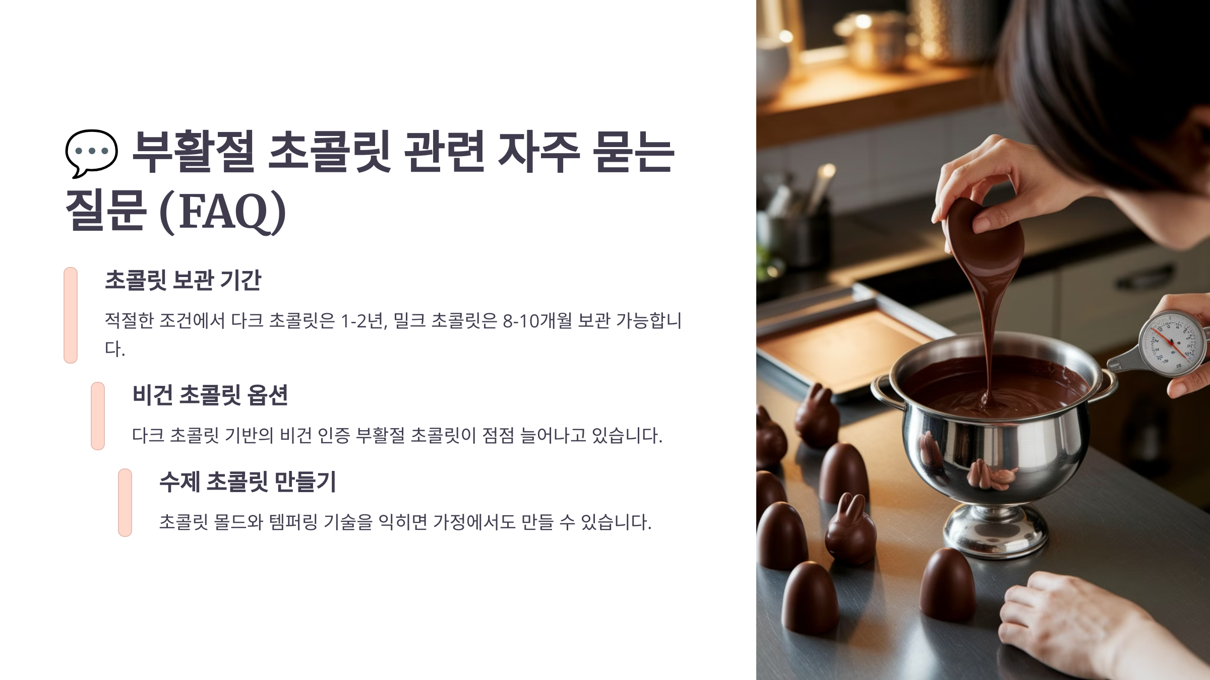 이제 마지막으로, 부활절 초콜릿과 관련된 궁금증들을 FAQ로 정리해드릴게요! 💬📌