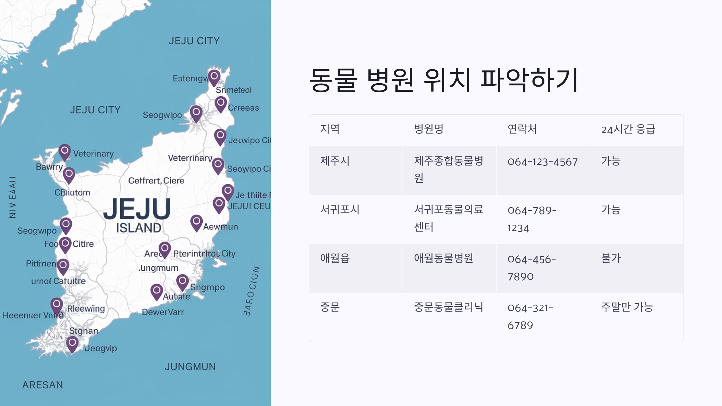 반려동물과 함께하는 여행 중에는 예상치 못한 상황이 생길 수도 있어요. 체하거나, 낯선 환경에 놀라거나, 사소한 상처를 입을 수도 있죠. 그래서 제주도 여행을 계획할 때 가장 먼저 해야 할 일 중 하나는 '가까운 동물 병원 위치'를 미리 파악해두는 거예요 🩺