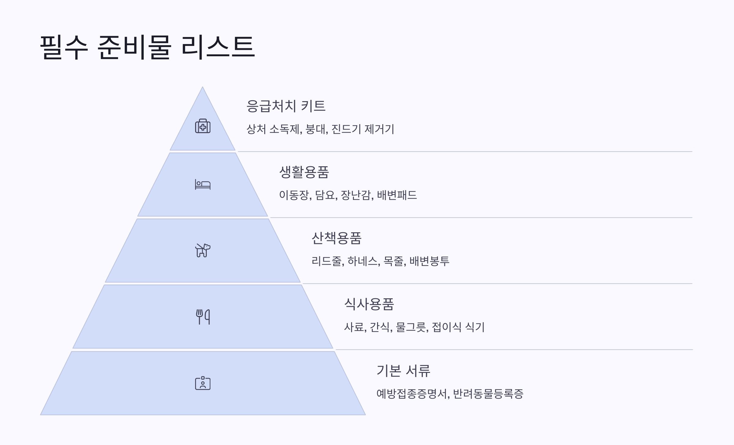 | 기본 | 이동장, 리드줄, 하네스, 배변봉투 | ✅ |