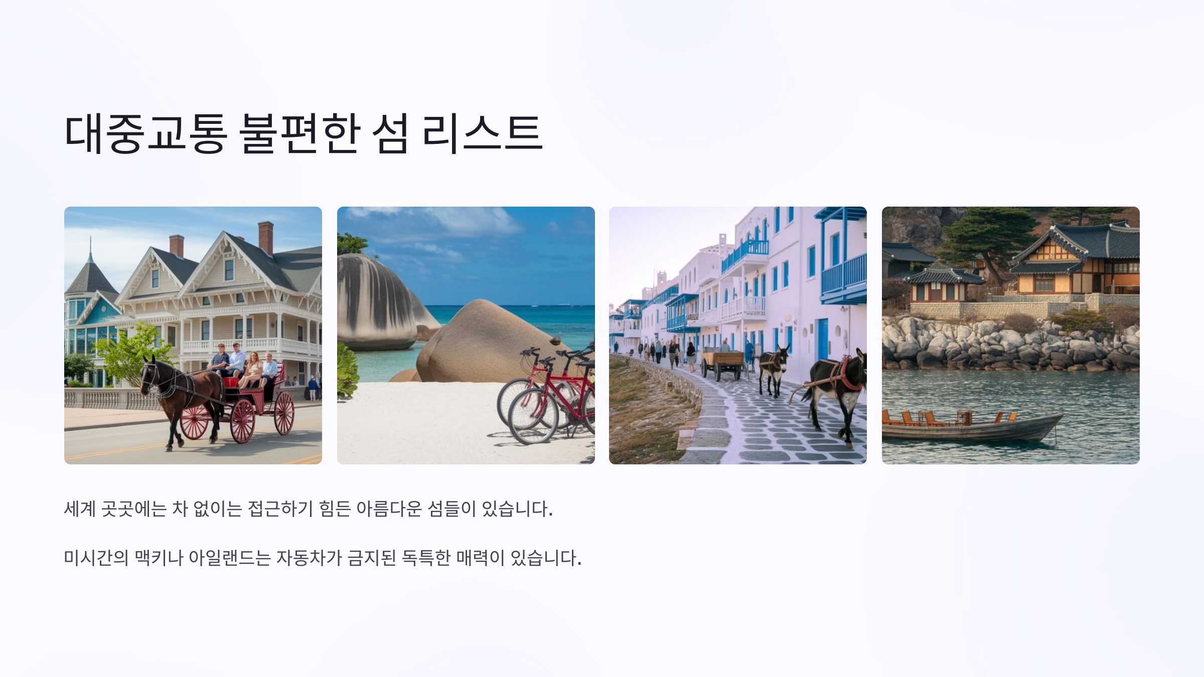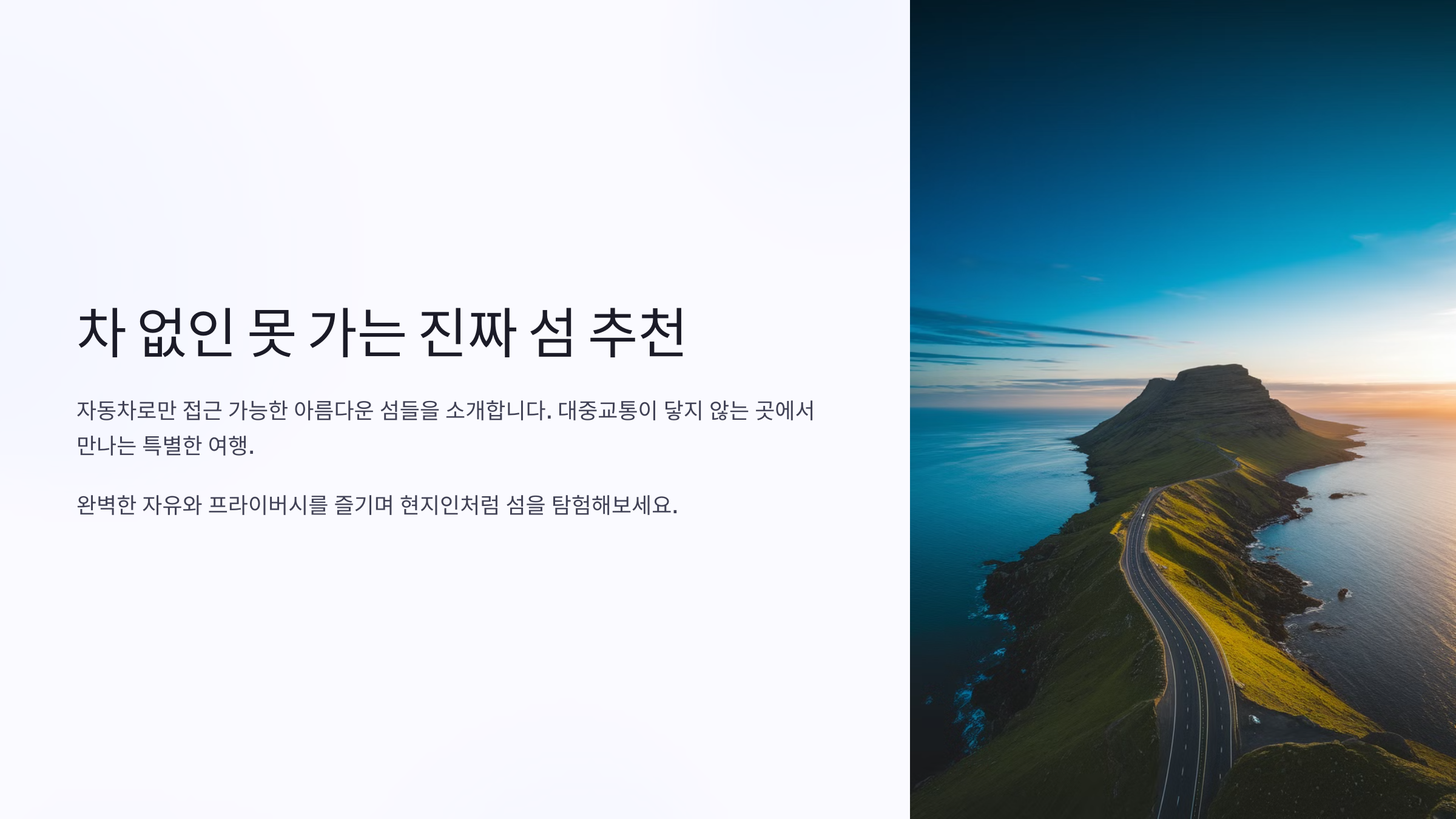 섬은 그 자체로 낭만과 힐링을 주는 장소지만, 접근성과 교통은 여행의 큰 변수 중 하나예요. 특히 자동차 없이 가기 어려운 섬들은 대중교통이 거의 없거나, 이동 수단 자체가 없어 불편함을 겪을 수 있어요. 하지만 반대로 자차로 이동하면 그만큼 자유롭고 깊이 있는 여행이 가능하죠!