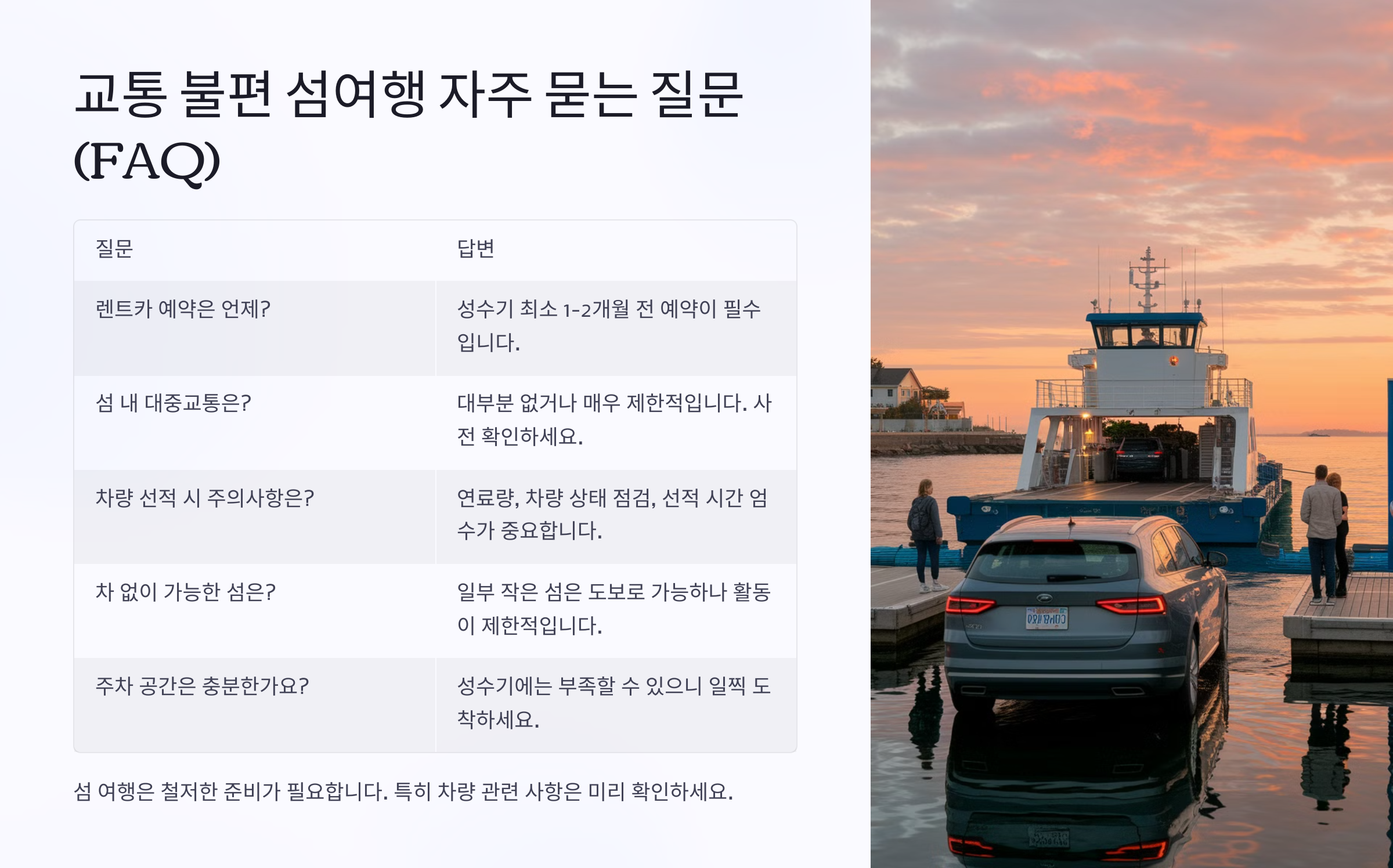 📌 교통 불편 섬여행 자주 묻는 질문 (FAQ)