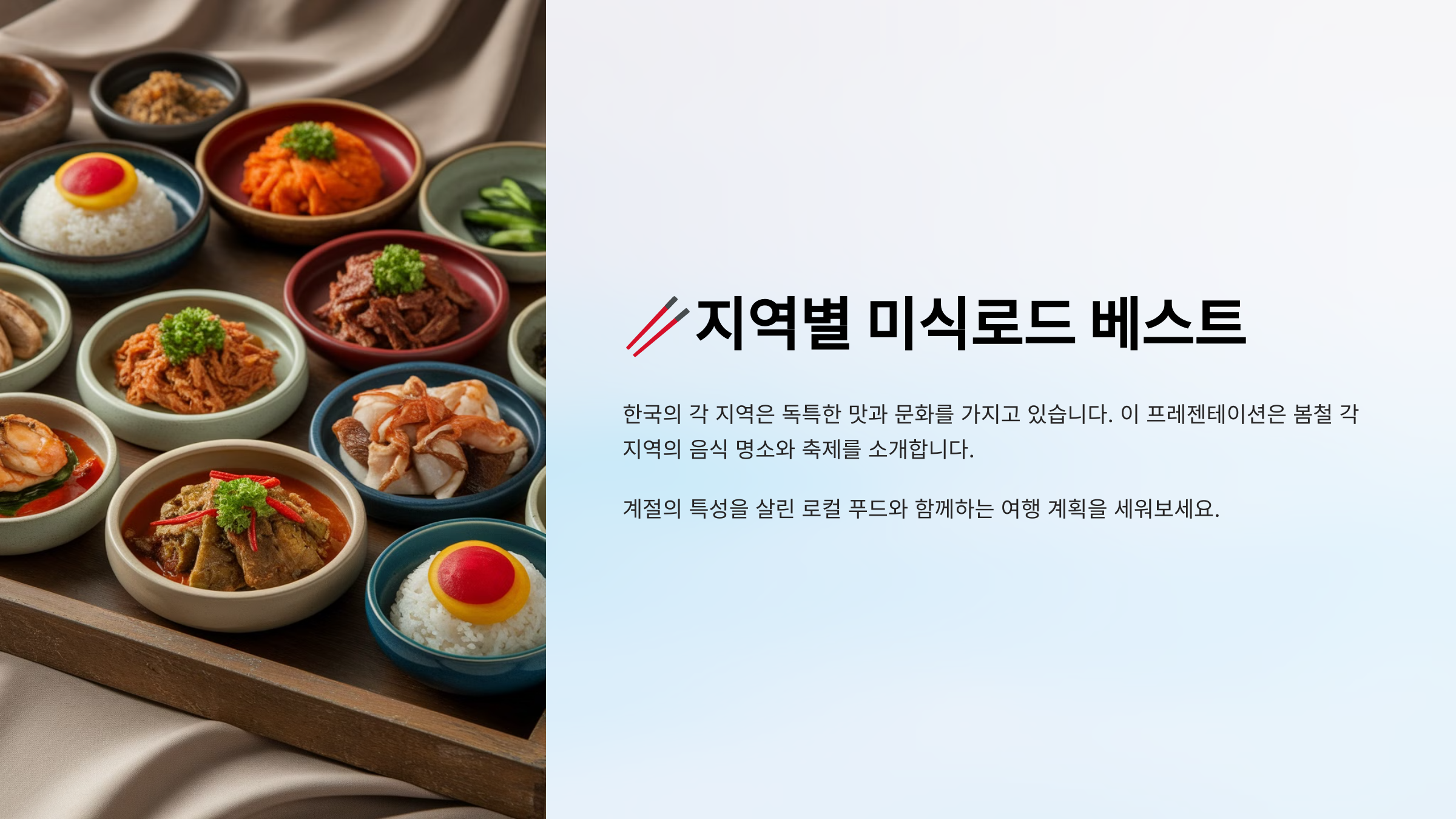 따스한 봄바람과 함께 미식여행을 떠나고 싶다면, 지금이 가장 좋은 타이밍이에요. 우리나라 각 지역은 봄이 되면 특산물과 향토음식으로 넘쳐나고, 축제와 함께 미각까지 사로잡는 여행 코스가 기다리고 있어요.