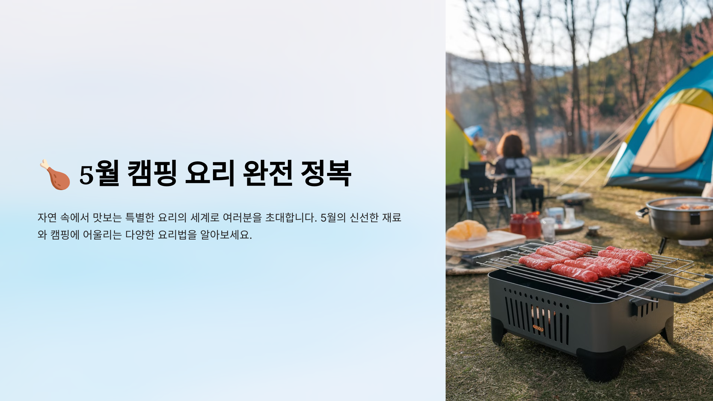 5월은 캠핑하기 가장 좋은 계절이에요! 선선한 바람과 따스한 햇살 속에서 야외에서 먹는 한 끼는 평소보다 두 배로 맛있게 느껴지죠. 특히 가족이나 친구들과 함께하는 캠핑 요리는 추억을 더 특별하게 만들어줘요.