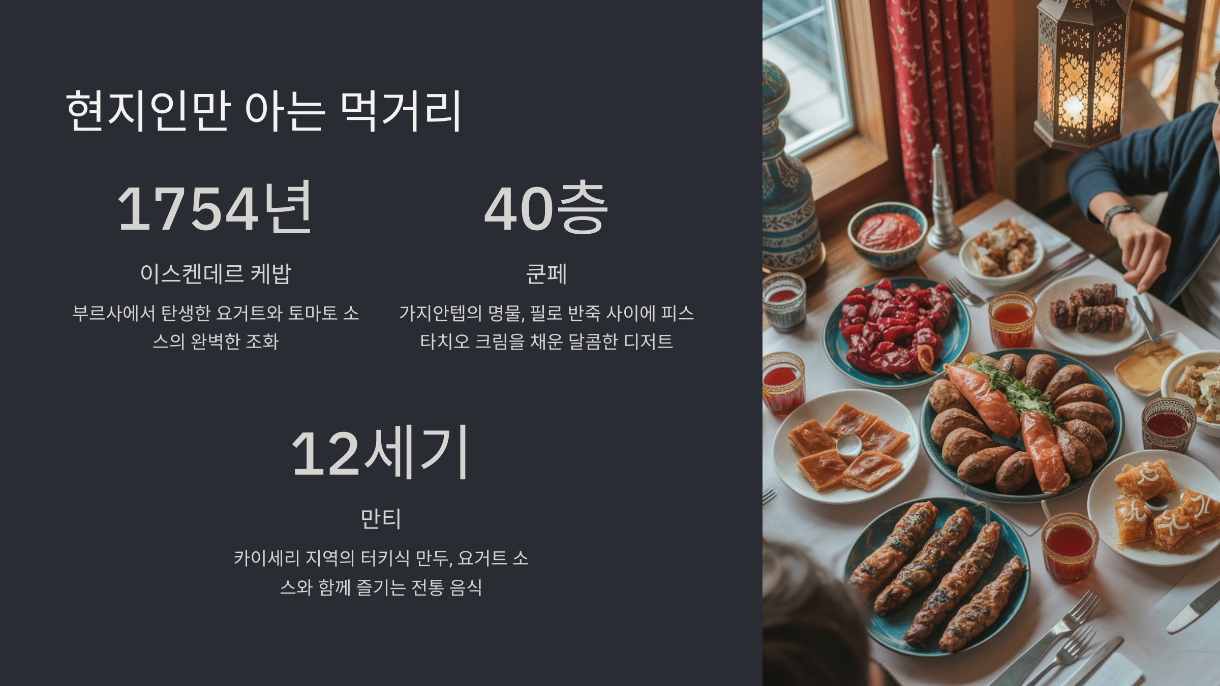 튀르키예 여행에서 빠질 수 없는 즐거움은 바로 음식이에요! 케밥만 알고 있다면 반도 못 먹어본 거예요. 현지인들이 진짜 즐기는 먹거리는 따로 있답니다. 😋
