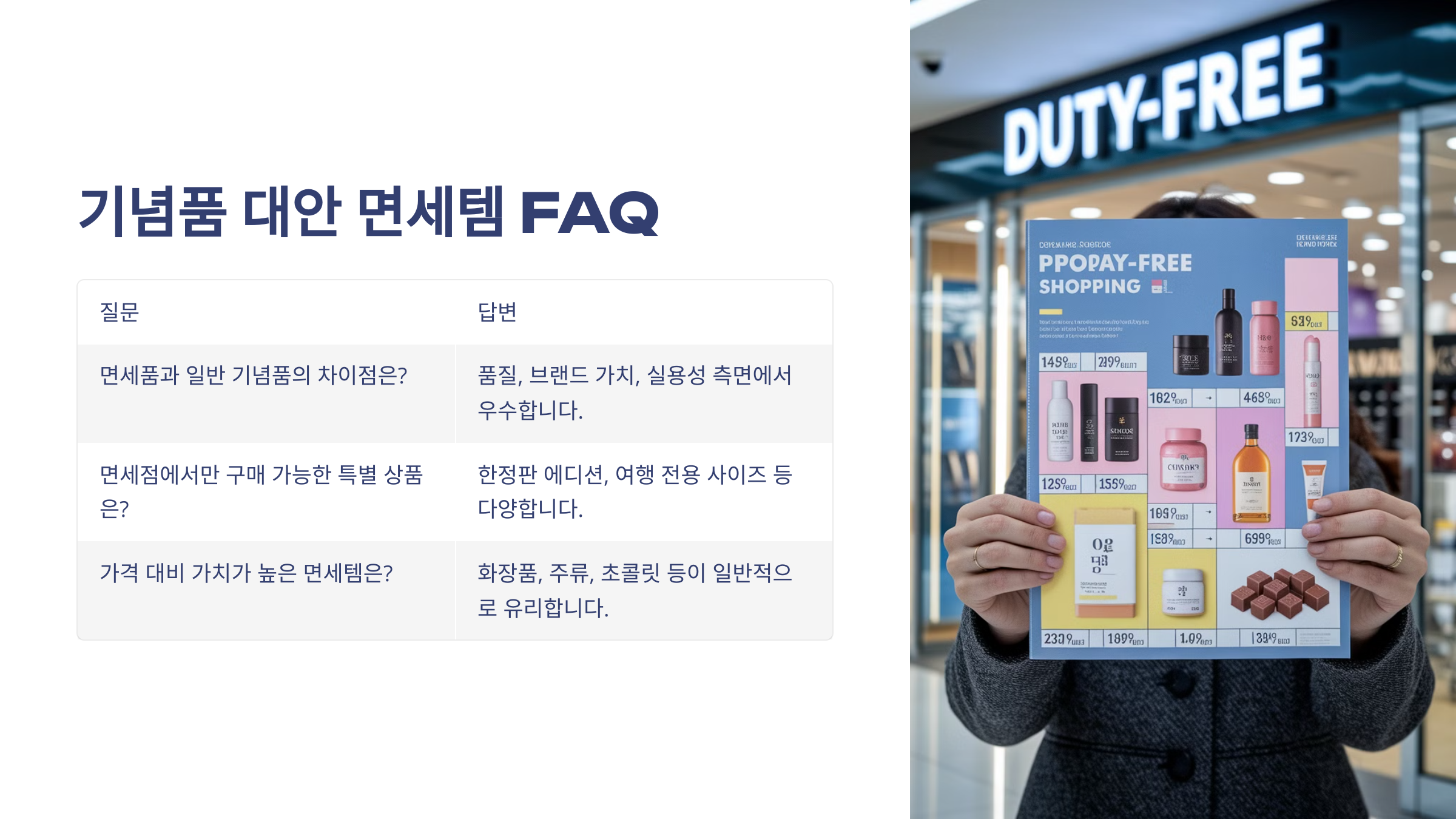 지금부터 “기념품 대안 면세템 FAQ”에서 빠르게 정리해드릴게요!