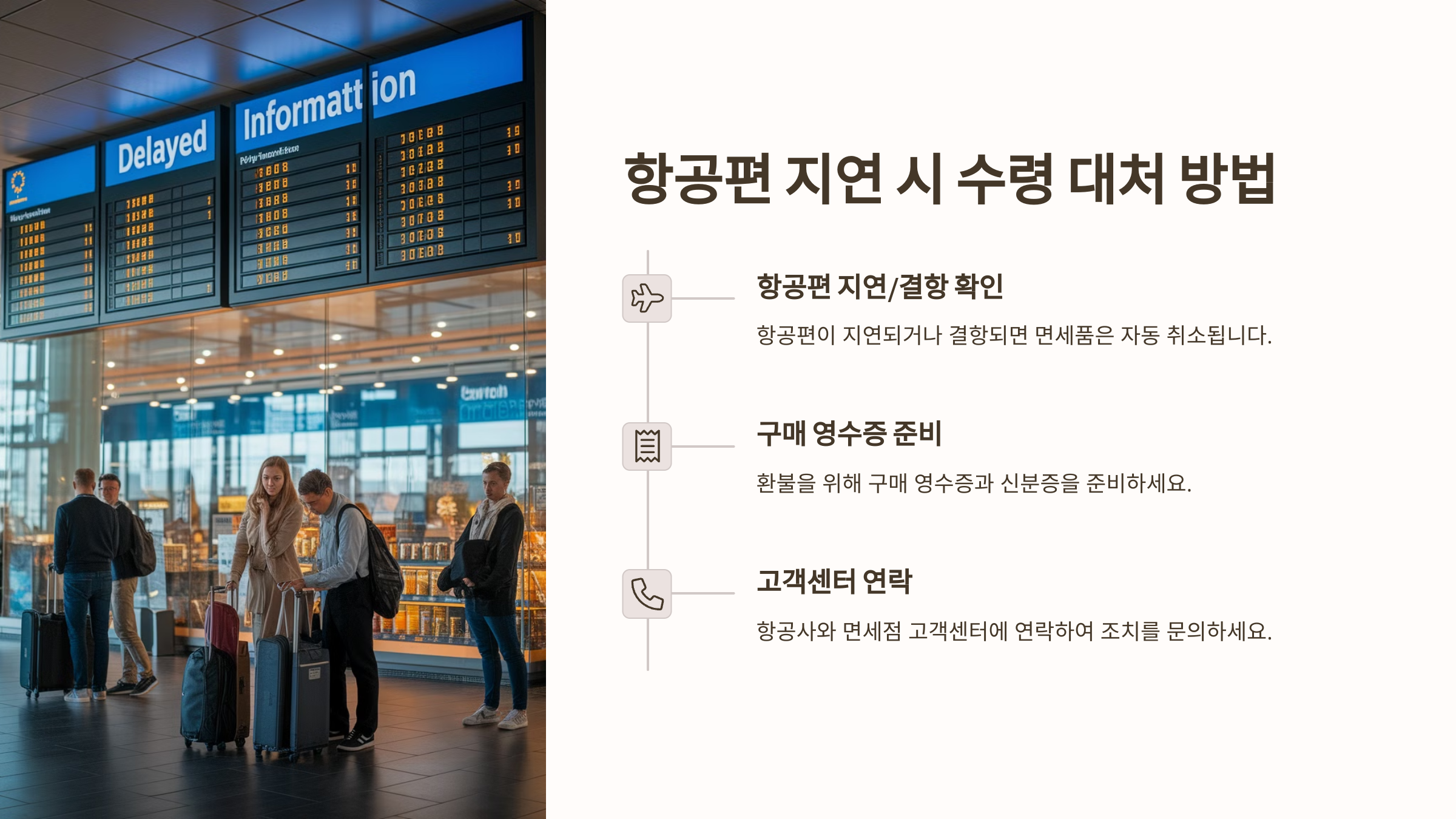 항공편이 지연되면 가장 먼저 걱정되는 게 바로 “면세품 수령 못하면 어쩌지?”라는 생각이에요. 하지만 걱정 마세요! 항공편 지연 상황에서도 대부분 면세점에서 유연하게 대응해주고 있어요. 👌