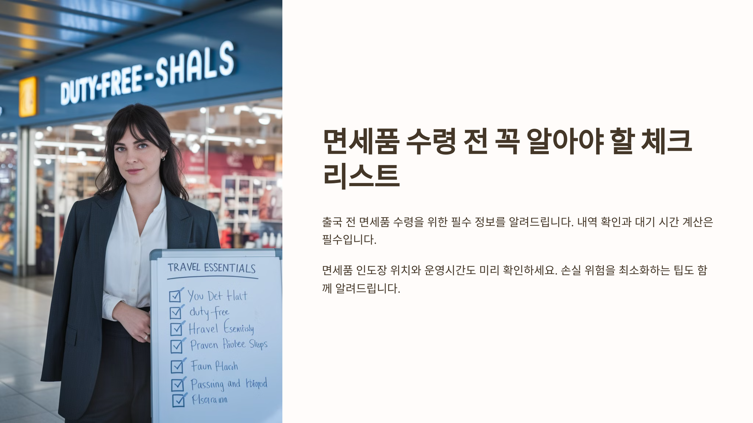 이번 글에서는 면세품 수령 시 꼭 알아야 할 정보부터 놓치기 쉬운 꿀팁까지 정리해드릴게요. 공항에 도착해서 당황하지 않도록, 이 체크리스트만 기억하면 완벽해요!