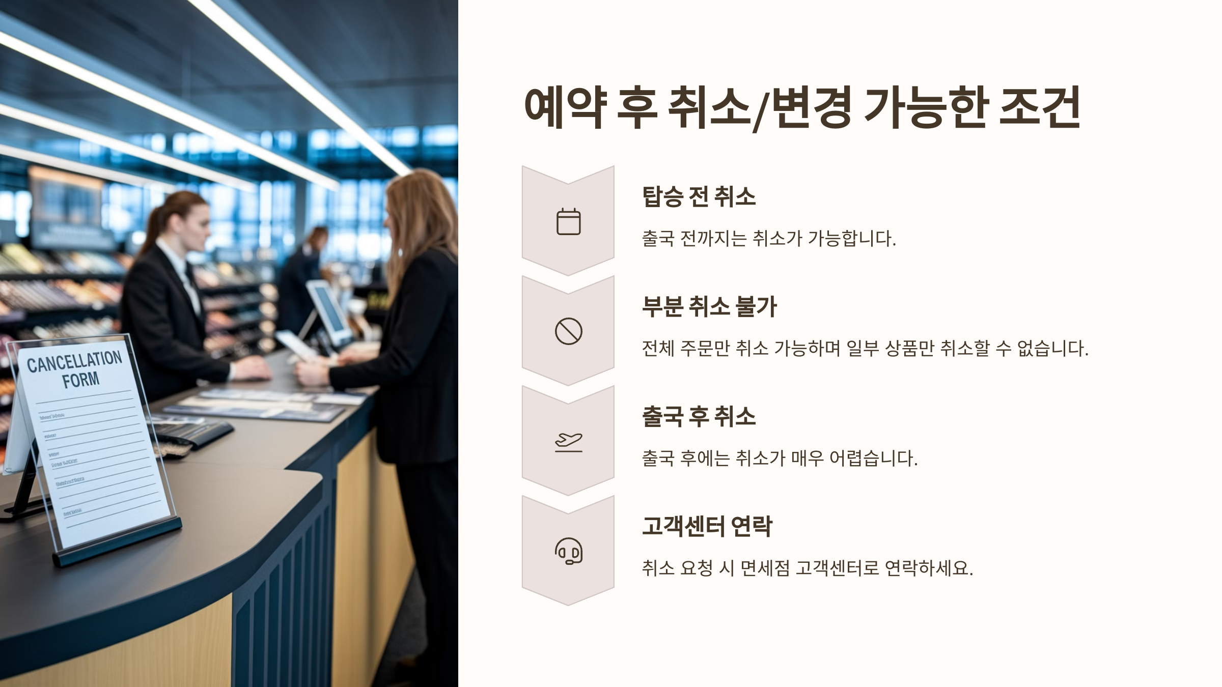 면세품을 예약하고 나서 일정이 바뀌거나, 마음이 바뀌는 경우 누구나 한 번쯤은 ‘취소나 변경이 가능할까?’ 고민하게 돼요. 결론부터 말하자면 **수령 전이라면 대부분 가능**하지만, 몇 가지 중요한 조건이 있어요. ✅