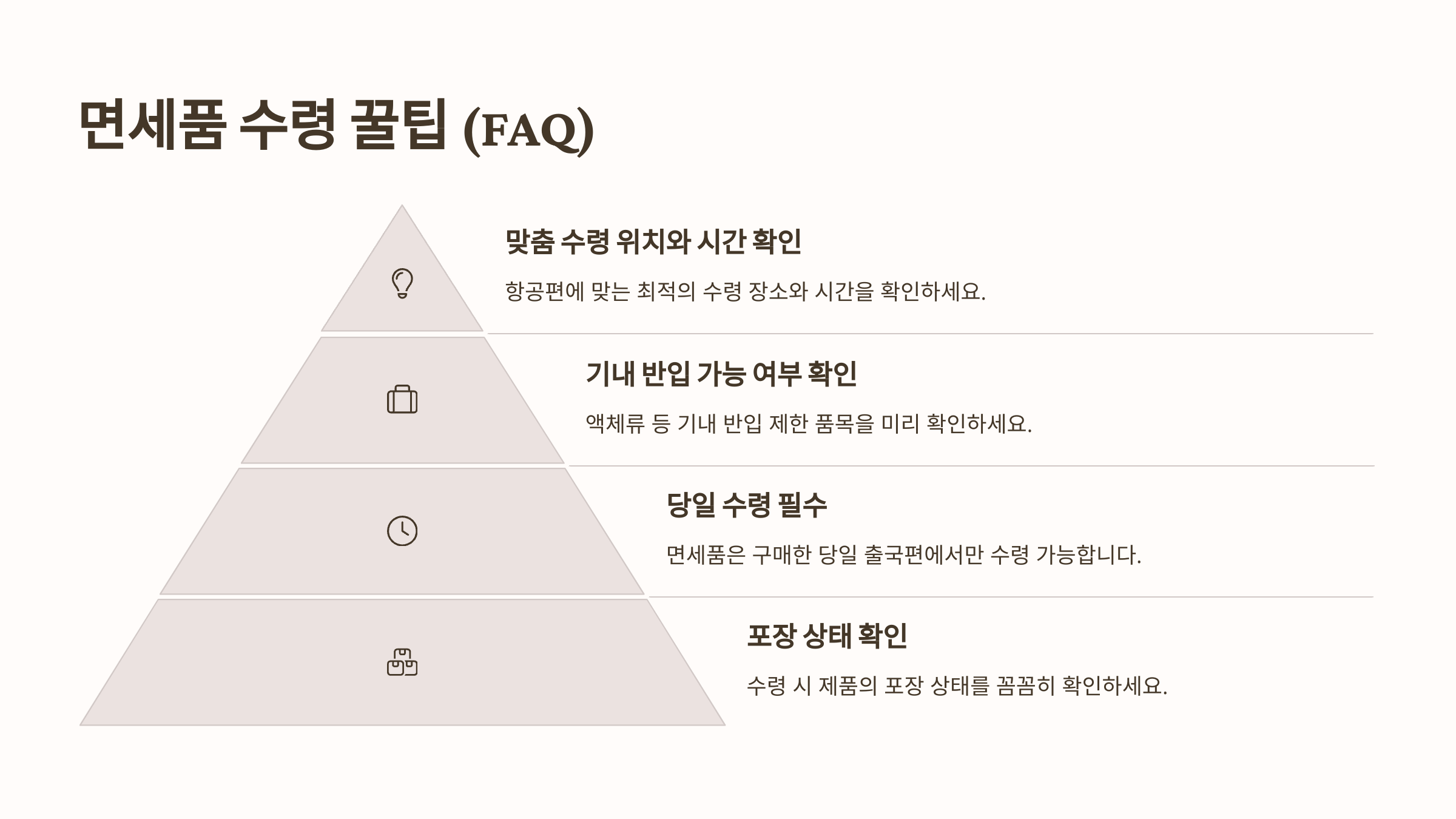 면세품 수령 시 본인 확인을 위한 여권 또는 모바일 탑승권이 반드시 필요하니, 수령장소뿐 아니라 필수 준비물도 함께 챙겨야 해요. 📱