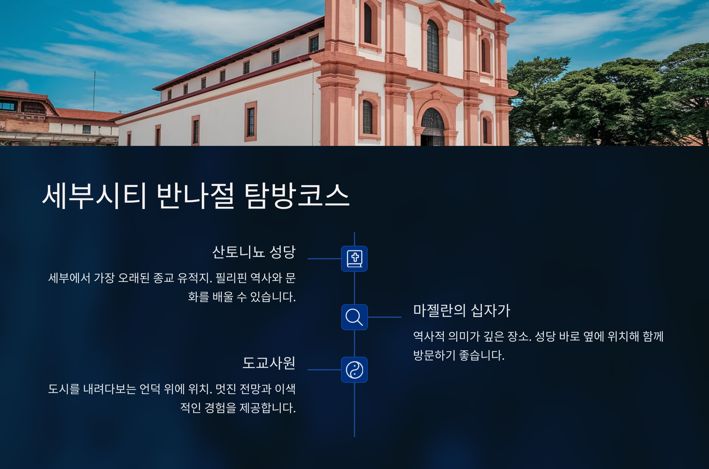세부시티는 필리핀에서 가장 오래된 도시 중 하나로, 과거 스페인 식민지 시절의 흔적과 현대적 도시 풍경이 함께 공존하는 매력적인 곳이에요. 가족과 함께 반나절 정도 여유가 있을 때 둘러보기 좋은 코스를 소개할게요.