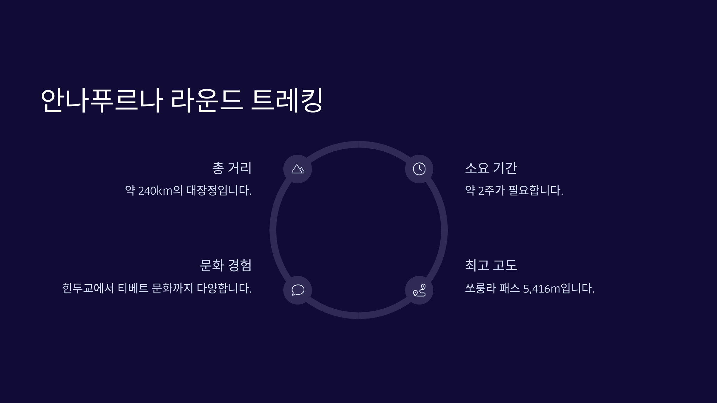 | 안나푸르나 라운드 | 210km | 5,416m | 상 |
