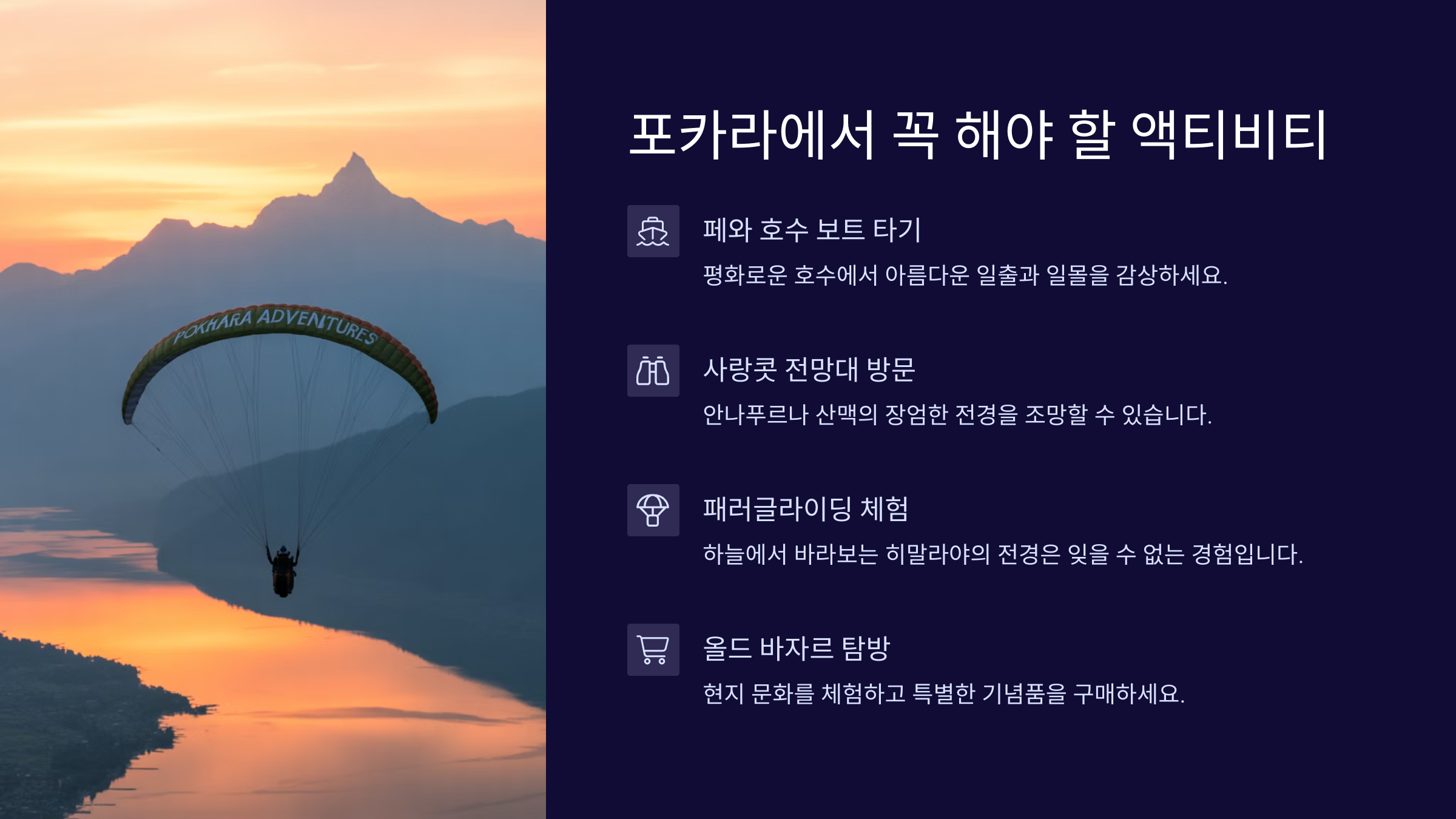 🎯 포카라에서 꼭 해야 할 액티비티